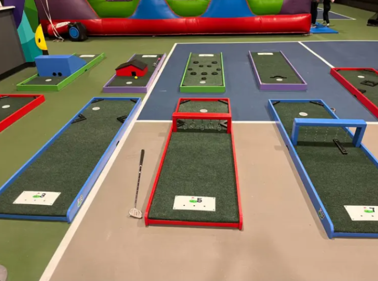 - Custom Wooden 9-Hole Mini Golf Course with Integrated LED Lighting