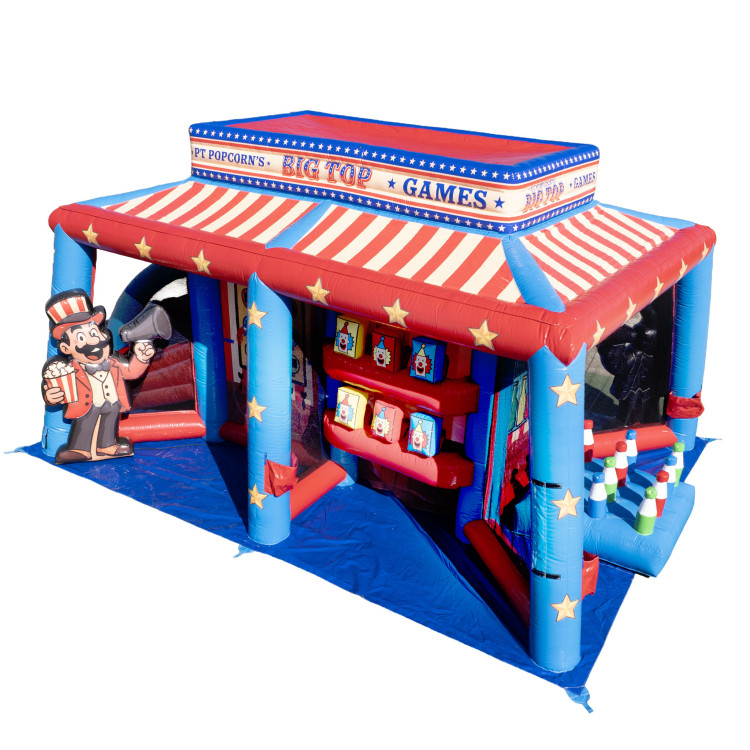 Step right up and experience Barnum’s Big Top Carnival Game, the ultimate centerpiece for any party or event! This vibrant, circus-themed attraction brings classic midway excitement to life with a dazzling lineup of crowd-pleasing games. Guests can test their aim with Balloon Pop, toss their way to victory in Bank a Ball, or show off their precision with the legendary Milk Can Toss. Colorful, lively, and packed with nostalgia, it transforms any space into a bustling carnival.